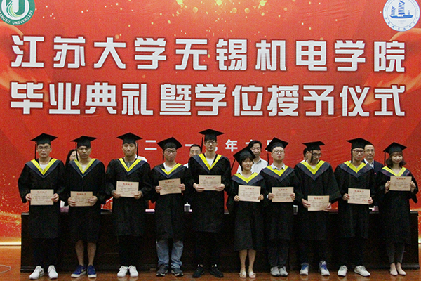 毕业典礼由我校党委副书记周桂瑾主持。江苏大学副校长梅强、教务处副处长冯志刚、学生处副处长张世兵,我校领导龚方红、周桂瑾、杨雪琴及相关部门、学院负责人出席。江苏大学学工处张世兵副处长宣读了关于表彰2019届江苏大学优秀毕业生的决定,孙旋、周忠仁、陈占富、耿鑫鑫、孙涛、姜绍忠、徐有薇、孙文卿、赵登帅、周乾、许天星、徐楠楠、秦宇祺、张雪、王博、鞠燕、陆祉帆、滕彬、王敏、陈阳、王迪等21名同学因学习成绩优良、综合素质全面获评江苏大学2019届优秀毕业生称号。杨雪琴副校长宣读了关于表彰江苏大学无锡机电学院优秀毕业生的决定,周俊杰等33位同学荣获表彰。两校领导现场为获表彰同学颁发荣誉证书。