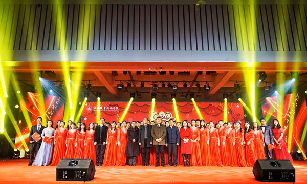 演出之前,校党委书记朱爱胜代表学校党委和行政向全校师生员工致新年贺词。朱爱胜指出,2019年是学校事业发展极不平凡的一年,这一年学校双喜临门,既迎来了建校60周年,又成功入选全国前10名高水平学校建设单位,学校各项事业发展呈现新态势新局面。