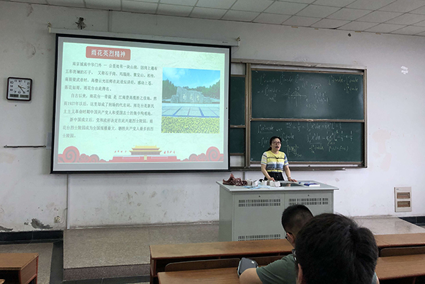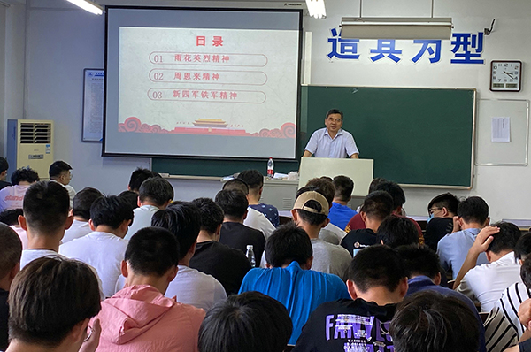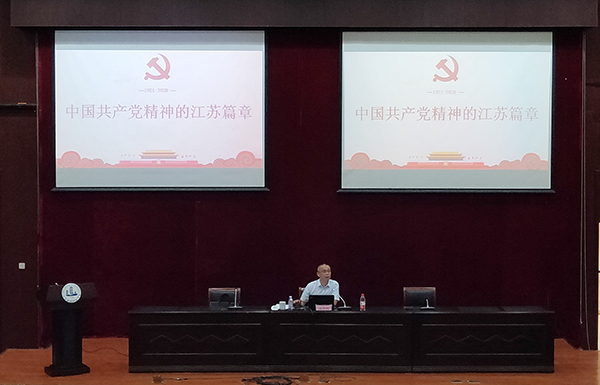 校领导们主要从“雨花英烈精神”“周恩来精神”“新四军铁军精神”进行了讲授。朱爱胜书记通过雨花英烈为国家抛头颅洒热血的悲壮人生、周恩来“为人民服务而死”的诺言、新四军刘老庄82烈士的经典案例等,深刻的阐释了雨花英烈精神、周恩来精神和新四军铁军精神。龚方红校长从全球疫情、中国战“疫”的案例引出中国特色社会主义制度的优越性和中国精神,导入中国共产党精神的江苏篇章。