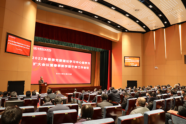 2月20日上午,学校在综合楼一楼报告厅召开寒假党委理论学习中心组学习扩大会议暨新学期干部工作会议,深入学习贯彻习近平新时代中国特色社会主义思想,深入贯彻落实党的十九大和十九届历次全会、省第十四党代会及全国全省职业教育大会精神,提升广大干部政治觉悟、理论素养和履职尽责能力。