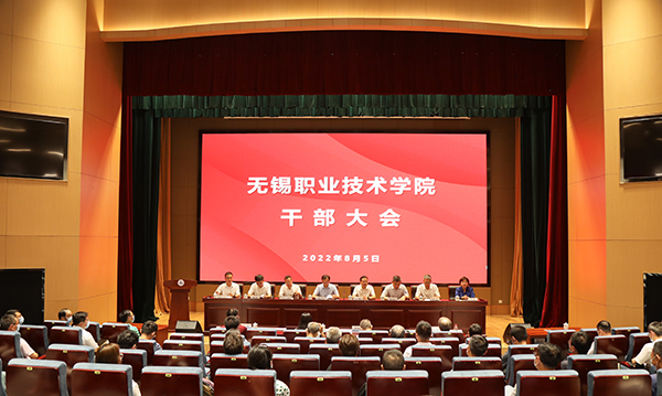8月5日下午,我校在综合楼一楼报告厅召开干部大会,宣布江苏省委关于校领导班子调整的决定。省委组织部副部长、省公务员局局长黄楚中,省委教育工委副书记、省教育厅党组成员徐子敏,省委组织部干部五处处长、一级调研员王本文,省委教育工委组织处处长陈艳,无锡市委组织部副部长、考核办副主任王勇,学校新老领导班子成员出席会议。会议由朱爱胜同志主持。学校中层及以上干部,部分老领导,区级以上党代表、人大代表、 政协委员,民主党派负责人及高级职称教师代表参加会议。