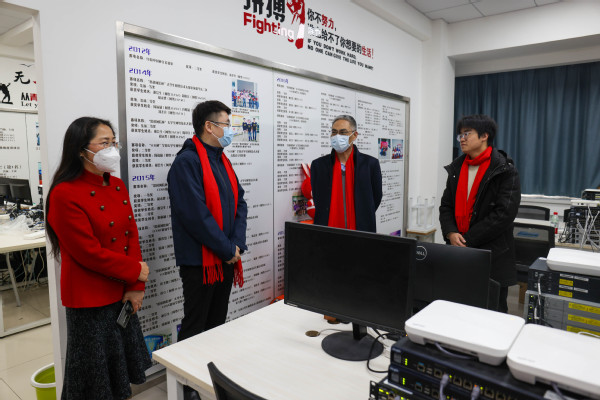 薛皓月一行在图B304技能实训室走访慰问了留校过年学生,与学生们亲切交流,倾听学生需求,询问同学们寒假在校的生活学习情况,向他们致以新春祝福和节日问候。