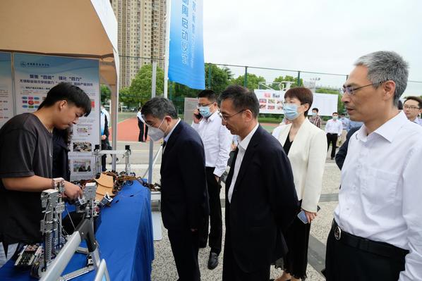 江涌强调,要以本次职业教育活动周为契机,结合学习贯彻习近平新时代中国特色社会主义思想主题教育,大力弘扬劳动光荣、技能宝贵、创造伟大的时代风尚,全面提升职业教育的吸引力和美誉度。一要高举旗帜明方向,牢记立德树人光荣使命,健全“三全育人”体系,坚持“五育并举”,为培养堪当大任的高素质技术技能人才奠定坚实的基础。二要遵循规律谋发展,不断完善现代职教体系,推动职业教育与普通教育深度融通、职业教育与终身教育协调发展,搭建人才成长“立交桥”。三要全面协同聚合力,深化产教融合校企合作,提升职业教育对经济社会发展的贡献度。