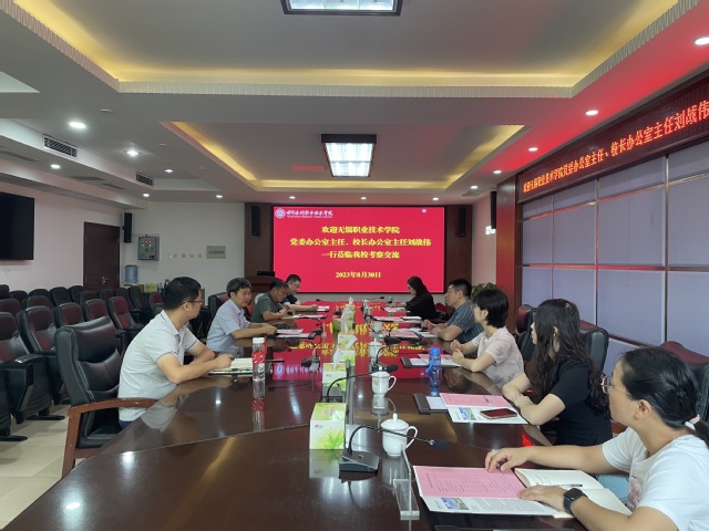 29日下午,在郑州职业技术学院考察调研中,该校党院办黄海峰主任等热情接待了我校人员。双方就学校高质量发展、年度考核及办公室具体业务等方面进入深入交流。