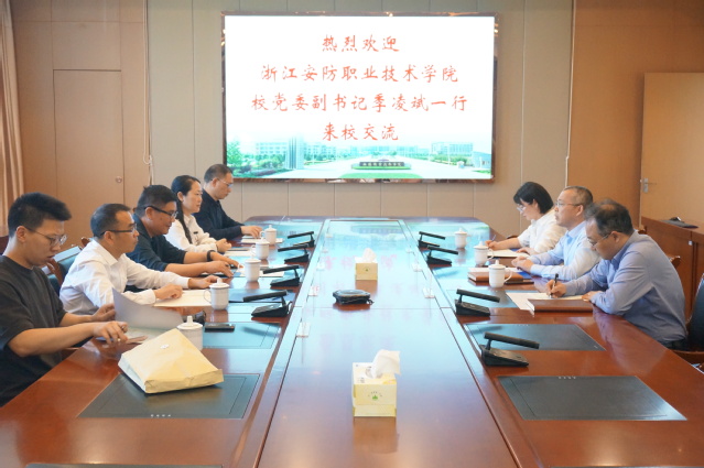 5月14日下午,浙江安防职业技术学院党委副书记季凌斌一行来校调研交流,玛雅吧 党委委员、副校长强伟纲接待并主持会议,校团委及设计艺术学院相关负责人陪同座谈。
