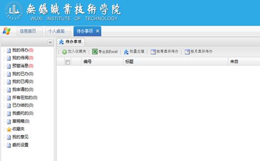 二. 先登录个人门户平台http://my.wxit.edu.cn,再点击办公系统标签进入办公系统。