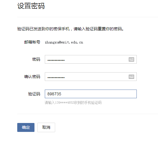 步骤五设置新密码。根据提示设置新密码,填写密保邮箱邮件中的验证码,点击“确定”,系统提示“重置密码成功”信息。