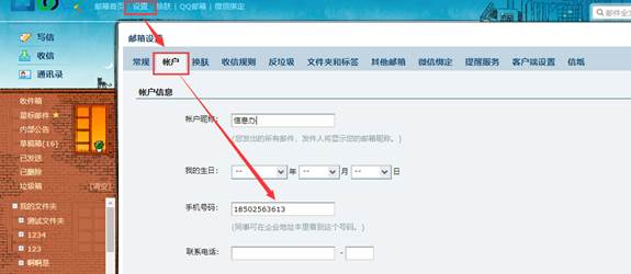 步骤一绑定手机。打开设置。登录邮箱后,通过“设置”-“帐户”-“手机号码”,填写自己的手机号码。