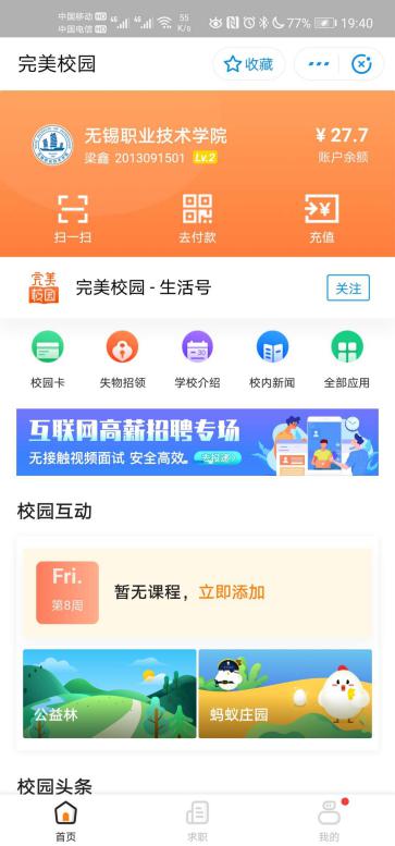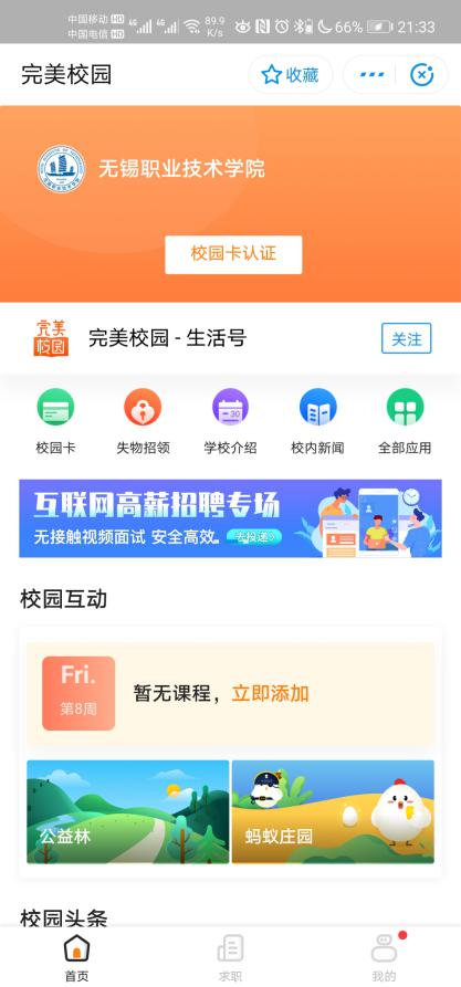 完成领取校园电子卡包。为了使用方便,可在手机上将“完美校园”添加到桌面,方便后期使用。