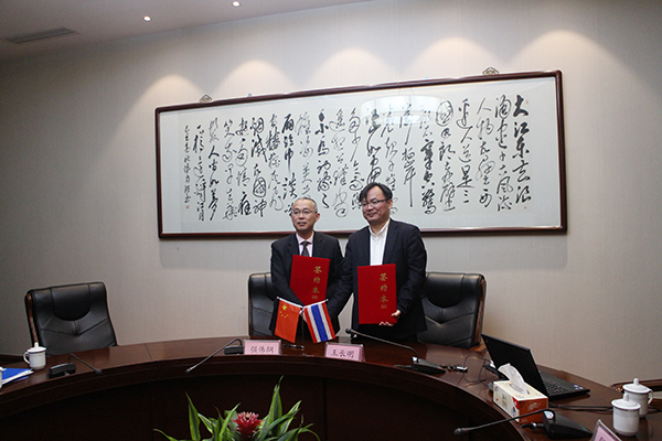 Delegation of Thailand Krirk University are warmly welcomed by WXIT faculties. WXIT Vice President Qiang Wei gang introduced the characteristics of International education in WXIT and expressed the intention of further cooperation with Krirk University. The chairman Mr. Wang Chang ming appreciated the hospitality of WXIT and introduced the International programs of Krirk University. He expected that WXIT and Krirk University would cooperate in the field of students exchange, credit transfer, scientific research and teacher training. Vice President Qiang Wei gang signed a memorandum of cooperation with chairman Mr. Wang Chang ming.