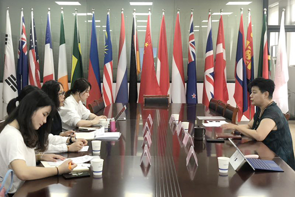 Director of school of International education professor Xiong Ying made an introduction of Internationalization of WXIT, and mainly discussed the necessity, development, and difficulties involved in the International cooperation. After that, delegates of research group communicated with WXIT language teacher who worked in Chinese language-learning center established in Malaysia. They have a deep communication related to the language training, curriculum, and teacher training program.