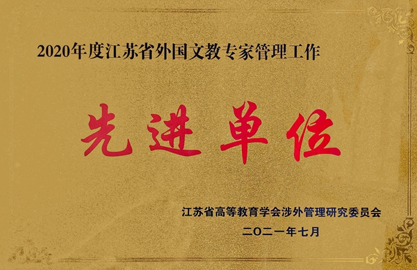 On July 21, the Annual Conference of Jiangsu Higher Education Society Foreign Management Research Institute (the former Foreign Cultural and Educational Expert Work Research Institute) was held by Jiangsu University in Zhenjiang city. He Xingchu, chief of international cooperation and exchange division of Jiangsu Provincial Education Department, Yang Xiaoping, Director of Jiangsu Bureau of Foreign Experts Affairs, and Wu Libao, secretary general of Jiangsu Higher Education Society attended the conference and delivered speeches. Representatives from 67 colleges and universities participated in the annual conference. Colleges and universities with outstanding achievements in the management of foreign cultural and educational experts in Jiangsu were awarded. WXIT was grantedthe 2020 Jiangsu Model Unit in the Management of Foreign Cultural and Educational Experts, marking the 4thtime consecutively, which fully demonstrated the high level and capacity of WXIT in foreign-related management.