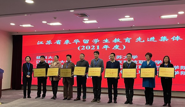 During themeeting,the work report of theEighthCouncil of theInternationalStudents Education Management Research Committeeof the Jiangsu Higher Education Societywas listened, theleadership transitionwas announced, and the decisionofcommendingoutstanding achievementswas read. For the fourth time, ourcollegewas awarded“JiangsuAdvancedInstitute inInternational StudentEducation”.Comrades Ping Yi and Zhu Wenda of the School of International Education were awarded “Jiangsu Advanced Individuals in International Student Education and Management and “Jiangsu Excellent International Student Counselor” respectively. The college has thus won all the collective and individual awards in this meeting.