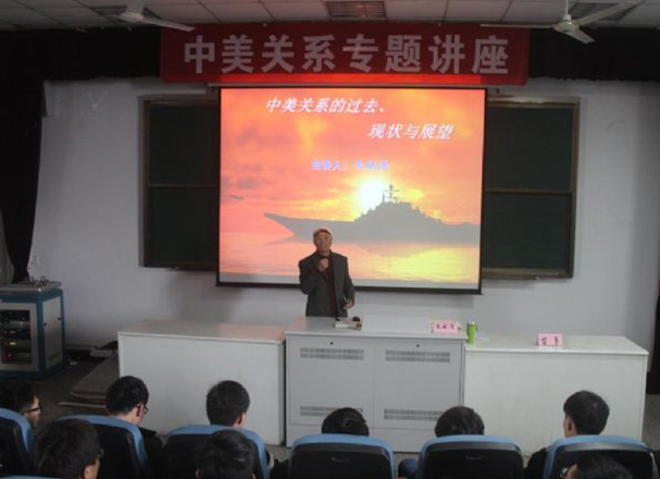 为加深大学生对中美关系的了解,提升同学们对国际热点的关注度。2016年4月12日(周二)下午14:00,玛雅吧 关工委资深副教授朱献清老师在教四102学术报告厅为大学生作了关于《中美关系的过去、现状及展望》的大型专题讲座。参加本次讲座有控制技术学院党委副书记苗勇、分团委书记花树洋老师及近200名在校大学生。