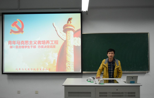 在青马工程的开班典礼上,分院党总支书记郭再泉老师强调了此次“青马工程”的目的和意义,并对优秀学干代表提出了三点建议:希望同学们充分认识青年马克思主义者培养工程的重大现实意义和战略意义;希望同学珍惜宝贵的学习机会圆满完成本次培训班的各项学习任务;希望同学们坚持理论联系实际,切实提高履行职责的能力和水平。