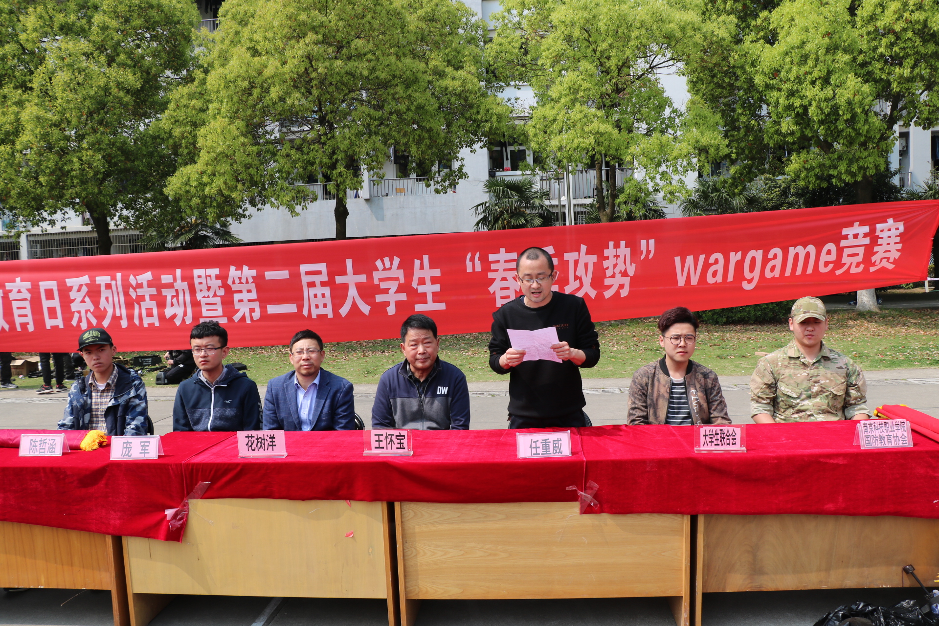 在第五个国家安全日到来之际,4月16日下午,控制技术学院橄榄绿军事爱好者协会在梅园篮球场举办第二届“无锡高校军协wargame”邀请赛。受邀的嘉宾有控制技术学院关工委副主任王怀宝老师,机械技术学院学工办主任花树洋老师,控制技术学院学工办主任任重威老师,控制技术学院分团委庞军老师,校社联主席卢于建,江南大学国防与军事协会代表,南京科技职业技术学院国防教育协会代表和各个兄弟社团等。