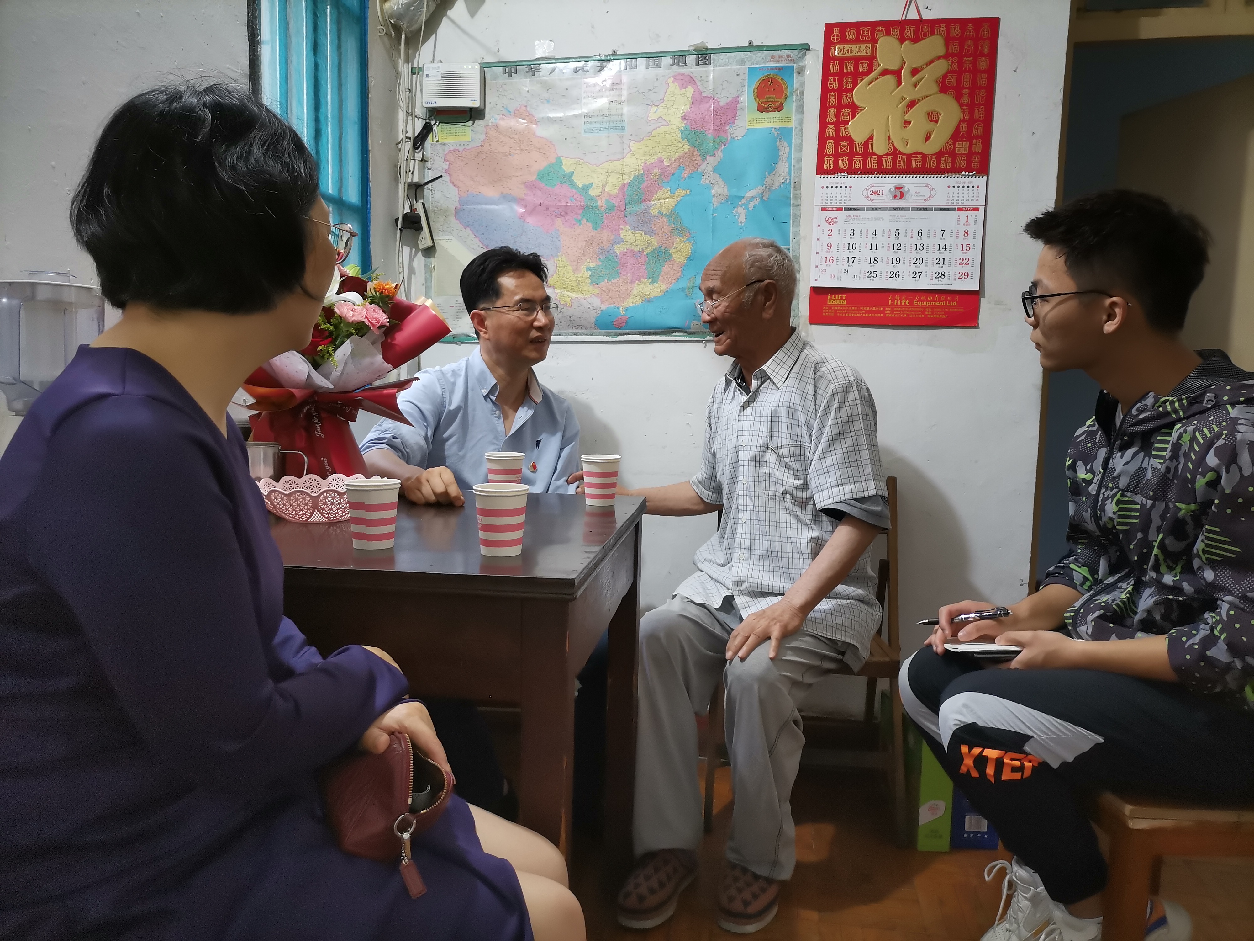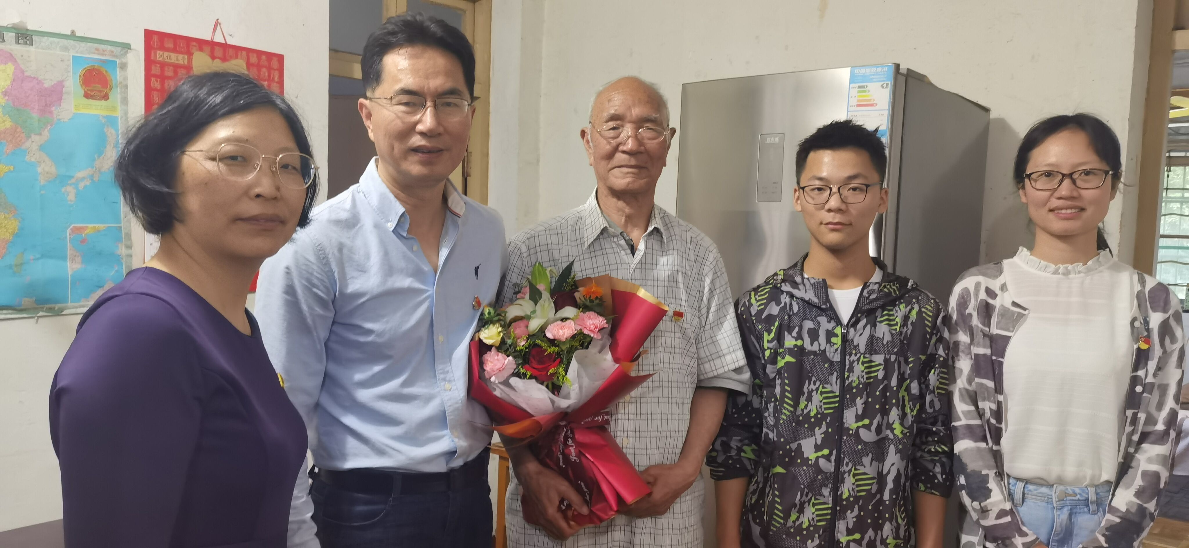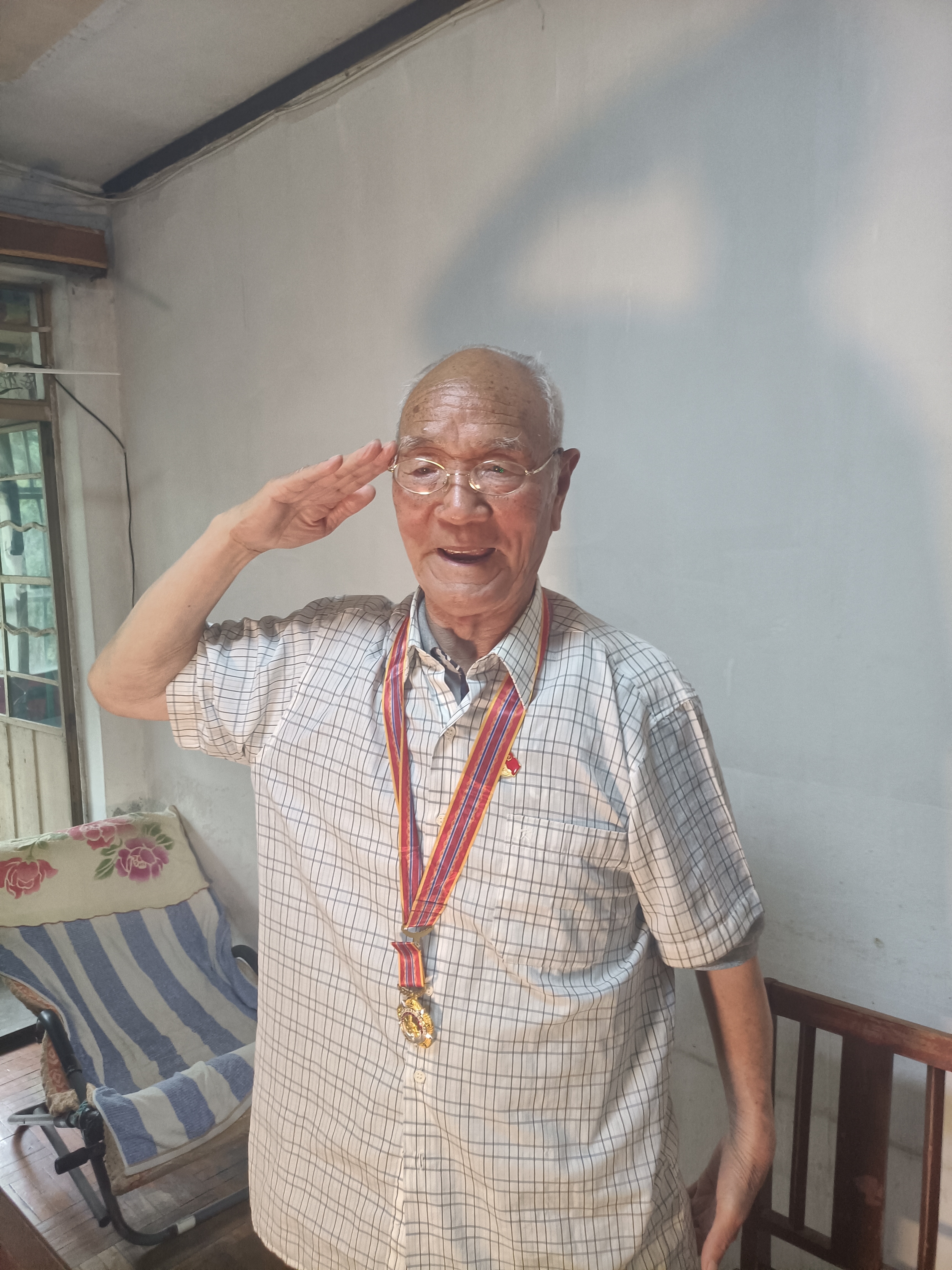 为迎接建党100周年,无锡市老干部局、退役军人事务局、无锡日报社共同开展“庆祝百年华诞 致敬最美老兵”活动,我校志愿军老战士、退休老同志刘升启老师获此殊荣。5月19日下午,校工会负责人、离退休工作处处长罗嘉军、和施蔚兰带领设计艺术学院关工委秘书长林姣姣老师和学生代表等一行,会同无锡市老干部局领导,共同走访慰问了抗美援朝志愿军老战士、我校退休老同志刘升启老师,向“无锡最美老兵”致以崇高敬意,并送上亲切问候。