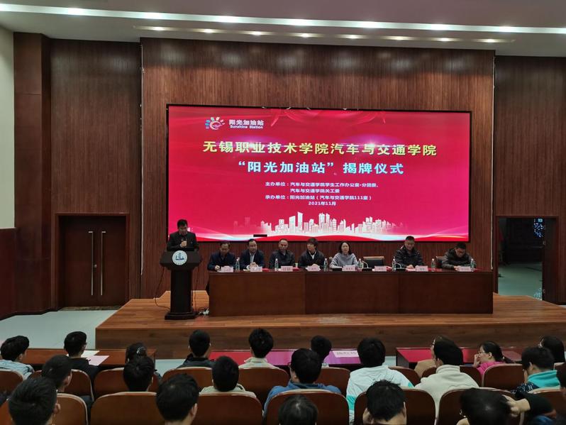 “教育的起点是人,教育的终点是人的幸福成长”,汽车与交通学院积极探索德育新模式。11月23日下午,汽车与交通学院在国际交流中心一楼报告厅举行“阳光加油站”揭牌仪式。副校长杨雪琴、关工委秘书长江铭、学生处处长徐悦、汽车与交通学院党总支书记邹晔等领导出席了本次揭牌仪式。