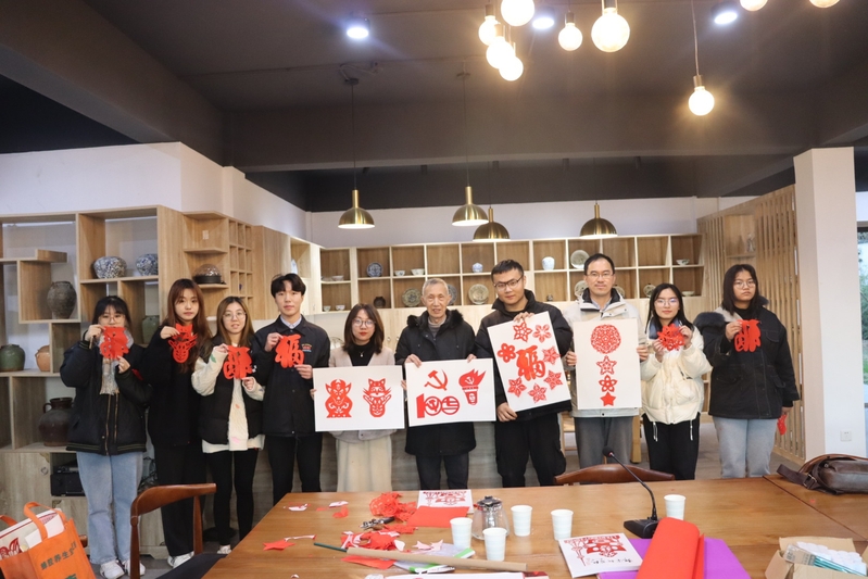 11月23日,设计艺术学院陈推老师、江董玉老师带领党员同学们一同前往拜访红色创作剪纸艺人郭宗新老先生,并邀请老先生到校给师生们授课,感受剪纸这项非遗文化的魅力,传承和发扬中华优秀传统文化。