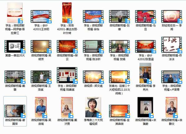 本次微视频献祝福作品,围绕阐述财经学院师生党员及身边人用实际言行迎接党的二十大。活动分为作品征集、评审推荐、分院宣传展播三个阶段。10月4日,“喜迎二十大,注力再起航”微视频献祝福主题党日活动在教1-215会议室正式启动。10月4日—10日,财经学院各支部进行作品征集,经过师生党员认真策划组织、拍摄优质祝福微视频,共收到30余份微视频作品。10月10日—13日,财经学院党总支组织专家对所有征集作品进行评审,依据上交作品内容、类型、制作等综合情况,评出了一等奖5项、二等奖8项、三等奖10项等。同时,根据评审结果,财经学院党总支对优秀作品通过微信、网站等平台面向分院师生进行展播。