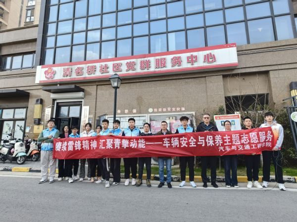 为进一步传承和弘扬雷锋精神,提高社区居民对车辆安全使用的认识,3月19日下午,汽车与交通工程学院关工委带领青年志愿者们赴清名桥社区开展了主题为“赓续雷锋精神,汇聚青擎动能”的车辆安全使用宣讲志愿服务活动。学院关工委常务副主任常华、关工委副主任书记刘雄、辅导员以及十余名青年学子参加了活动。