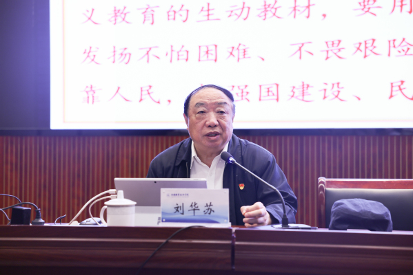 刘华苏将军向师生们介绍了新四军成立的历史背景和发展历程。他以史料、图片和生动事例讲解了南方三年游击战的艰苦卓绝、新四军在抗日战争中的重要作用和卓越功绩,并以《新四军军歌》为主线,解读、宣传了新四军坚定信念、坚忍不拔,英勇果敢、顾全大局、众志成城、纪律严明的新四军铁军精神。他向大家讲述了新四军英雄人物的光荣事迹,同时介绍了新时代发扬新四军光荣传统的英雄部队和英模人物。