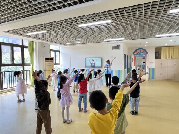 小动作也有大作用,在舞蹈室中,志愿者为小朋友们带来了精心准备的手势舞《小花朵》和《左手右手》。看见志愿者们的演示,小朋友们都跃跃欲试,迫不及待地想要加入进来。练习中每个小朋友都对手势舞表现出了极大的兴趣,手指动作从生疏到熟悉,最后在志愿者的悉心指导下,一起完成了手势舞的表演,提升了幼儿手指的灵活性和协调性。