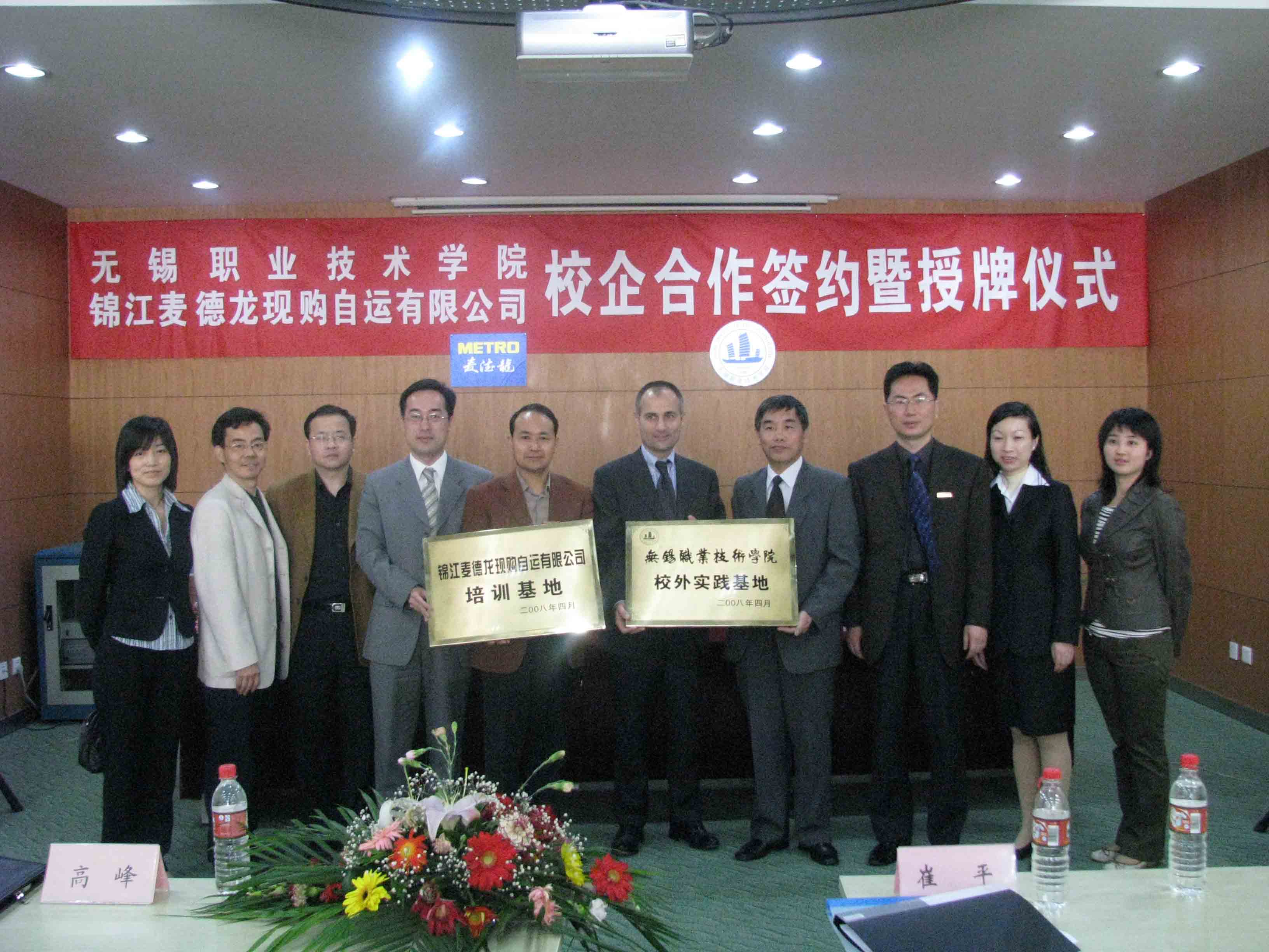 4月24日上午10点,锦江麦德龙现购自运有限公司与学院在图文信息中心会议室举行了隆重的校企合作签约暨揭牌仪式。本次揭牌仪式邀请了锡山区人事局、锦江麦德龙现购自运有限公司无锡锡山商场、众星集团、无锡幕墙有限公司以及学院和经济管理学院的各位领导参加。