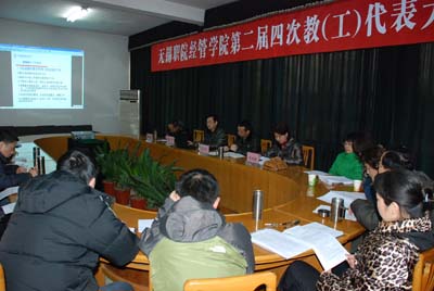 最后,经管学院党总支书记胡全裕在会上作了重要讲话。胡书记希望各位代表积极发挥作用,加强民主管理,加强师资队伍、专业建设,大家齐心协力,用发展的眼光和手段,迎接方方面面的挑战,为构建和谐校园而添砖加瓦。