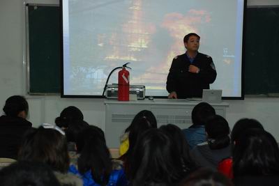 芮教员从“11.15”上海静安小区火灾事件及近期典型火灾案例分析;单位及家庭用电、用气的注意事项;单位及个人遇到火灾等灾难性事故,如何应急疏散;多种自救、逃生方式;初起火灾扑救意义及措施;消防设备的分类、使用、维护等七个方面作了讲解。并根据学校特点,指出了学校易发火灾的特点。要求大家高度重视消防安全,掌握相关的消防知识及相关的应急措施。
