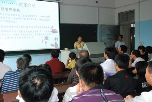 9月12日是我院新生报到的第一天,经管学院紧紧抓住陪同新生报到家长较为集中的这一天,于9月12日下午3:00,分别由工商管理系和经济贸易系在教学楼220和215教室同时召开了新生家长见面会。见面会场面十分热烈,广受新生家长的欢迎。