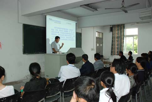 在新生家长见面会上,首先由工商管理系主任乔毅和经济贸易系主任邹笑言分别向新生家长介绍了两系下设的各专业概况、特点,实践教学基地的条件以及对学生的培养目标、学习要求。经管学院党总支书记罗嘉军,副院长崔平分别参加了两系主办的新生家长见面会,并在会上分别作了热情的讲话。对学院发展的历程、概况作了介绍;对学校这次为了控防甲型H1N1流感,接待新生所采取的新方式,作了解释;对新生来校深造表示热烈欢迎。经管学院领导还就新生家长所感兴趣的专业课程设置 、教育特色、学生实践、就业分配等有关话题作了精辟的介绍,使新生家长们对学校的教育充满信心,对学校的发展充满期望。