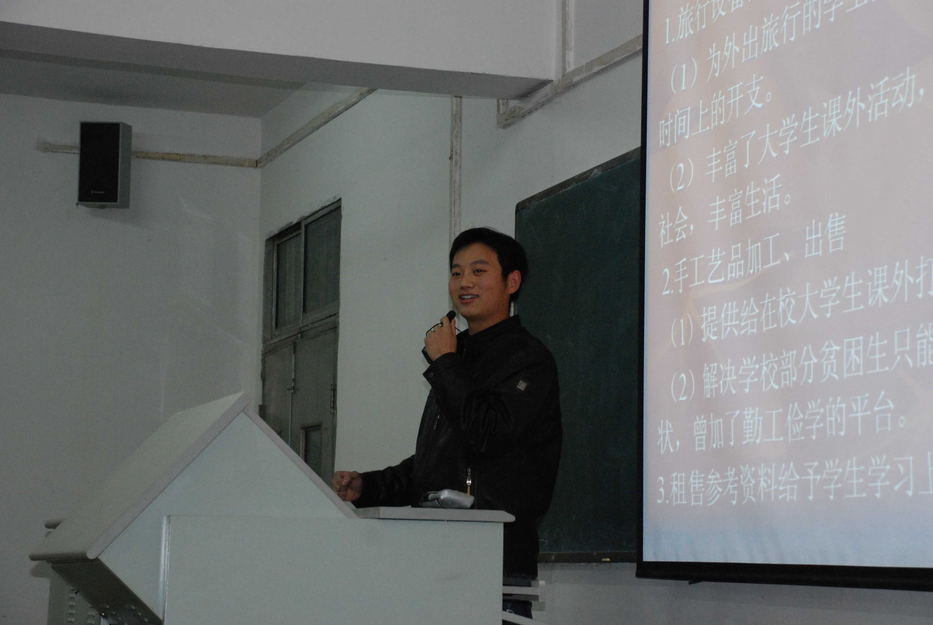 经管学院副院长崔平在创业试验区答辩会上作了重要讲话。崔院长要求申请学生认认真真,踏踏实实,践行大学生创业实践。在实践中,要不断总结,做好调研,提高经营能力与水平;在经营活动中,积累经验,使理论与实践相结合,踏上一个新的台阶。崔院长在会上还提出了经营中的一些注意事项。院学生处副处长、院团委书记储开峰,经管学院副院长张格物和有关部门的负责人参加了答辩会。