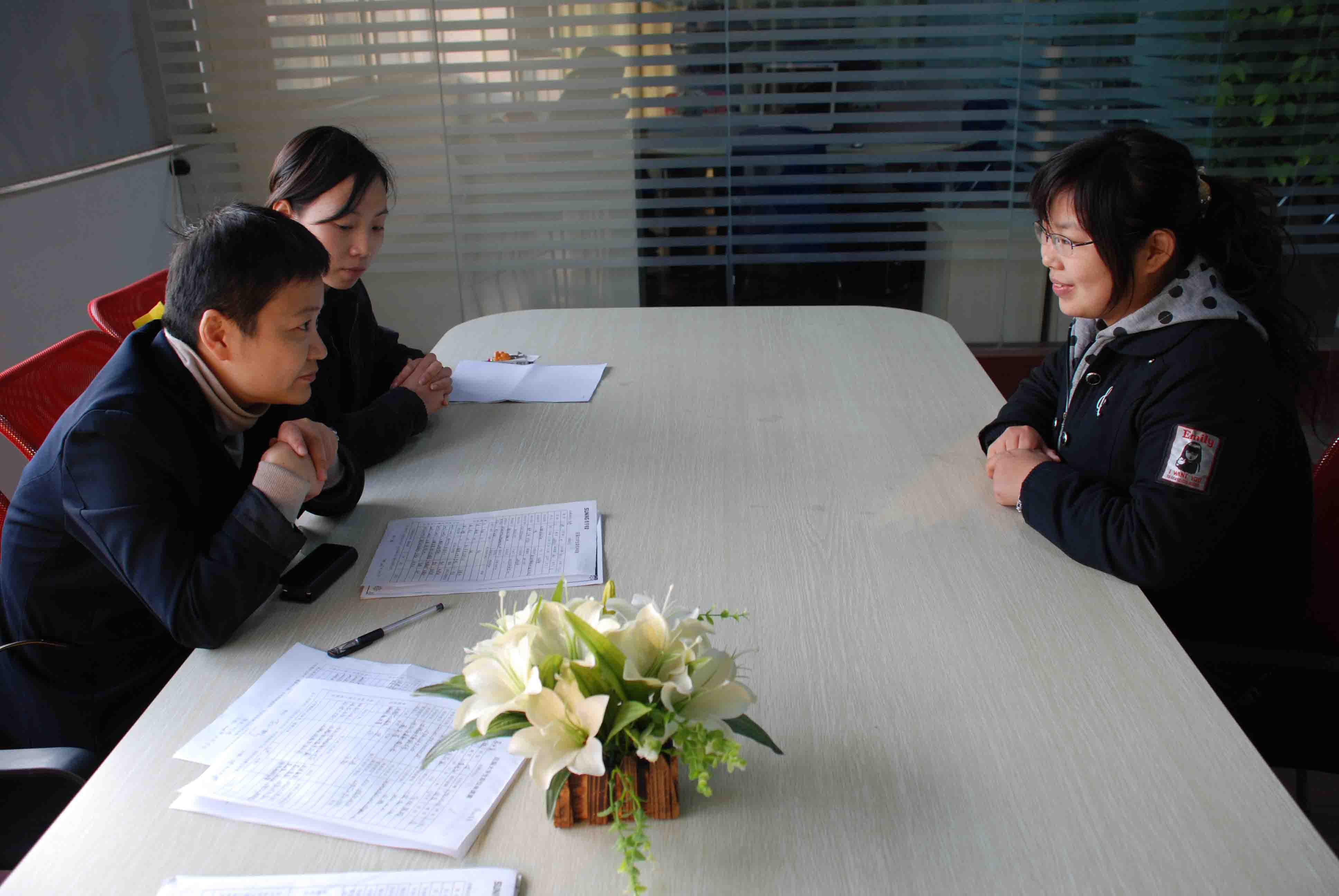 继上周苏宁招聘宣讲会后,无锡苏宁电器有限公司于11月19日下午在商务谈判实训室进行了学生的面试。本次面试的考官为无锡苏宁人事主管吴婷婷和无锡苏宁胜利门店店长盛宏民。上次投递简历,填写应聘申请表的大多数学生前来面试。