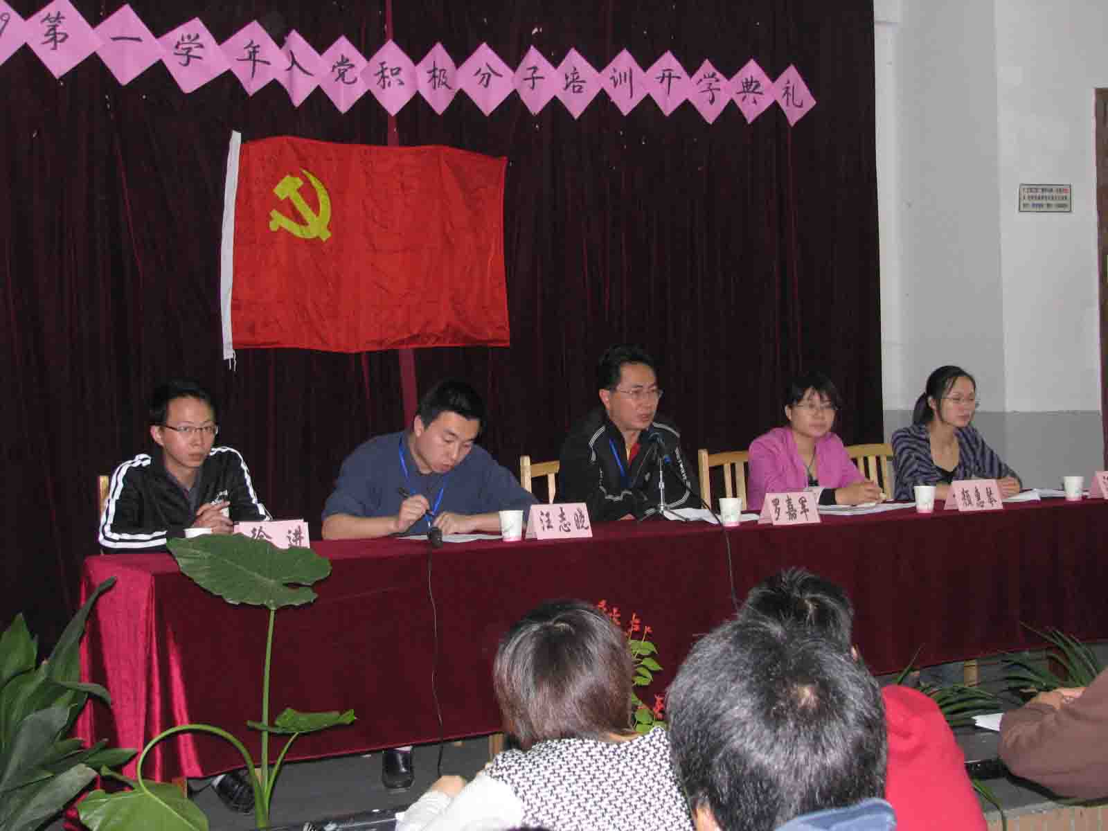 2008年10月7日13:30,中桥校区2008―2009学年度入党积极分子培训班在实验楼阶梯教室举行隆重的开学典礼,来自经管学院127名和电子信息学院的48名入党积极分子参加了开学典礼。开学典礼由分党校副校长、经管学院辅导员汪志晓老师主持。分党校校长、经管学院党总支副书记罗嘉军同志作了重要讲话。罗书记在讲话中重点提出对这一届积极分子的纪律要求,同时罗书记积极鼓励积极分子好好学习党的基本知识,端正入党动机,以实际行动向党组织靠拢;作为一名入党积极分子应是班校同学的榜样;要以党员标准严格要求自己,吃苦在前;摆正个人利益于集体利益关系;敢于和不正确的行为和风气作正确的斗争,积极表现,争取早日进入党组织的大门,为党组织注入新的血液。