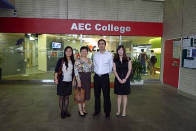 为了进一步加强对外交流、提高合作办学水平与规模,根据学院的安排,经济贸易系主任邹笑言和旅游教研室副主任顾琳炎,于2011年4月19日至22日,前往新加坡AEC教育集团进行为期四天的考察访问。