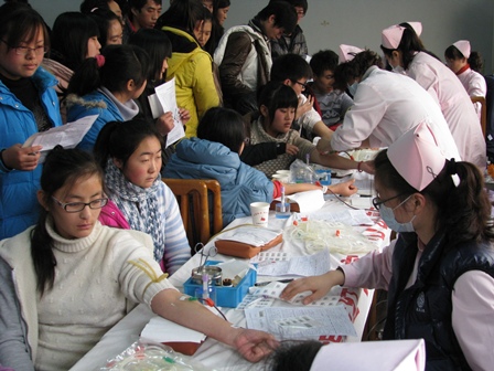 2011 年 12 月 30 日 下午,经管学院组织学生在中桥校区第三会议室进行义务献血。报名参加这次义务献血的学生共有近30个班级200余名,经体检合格后,112名学生正式参加了义务献血。