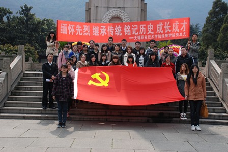 3月20日下午,经管学院党总支组织32名入党不久的学生预备党员在总支书记胡全裕、第一支部支委汪志晓、陈律、衣鹁老师的带领下赴无锡革命烈士陵园举行了“奠英魂、在红色旗帜下成长成才”主题党日活动。