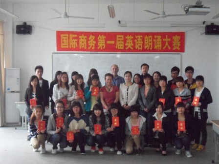 2012 年4月17日 ,经管学院国际商务专业在国际交流中心507成功举办首届“英语朗诵比赛”。来自大一、大二的40位同学踊跃参加比赛。选手们的精彩表现博得评委和观众的阵阵掌声。经过激烈角逐,比赛产生一等奖三名,二等奖四名,三等奖五名。此举极大激发了学生学习的热情,也为国际商务专业今后举办系列比赛打下良好基础。