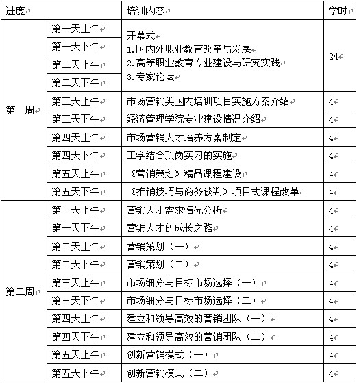 2.通过培训教学业务,培养学员树立现代化职业教育意识、具备改革创新精神,能协作开发课程、完善教学方法、丰富教学手段、为本专业制定工学结合、校企合作、顶岗实习人才培养方案的制定提出建设性意见。