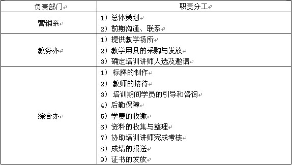 表3培训负责部门及职责分工