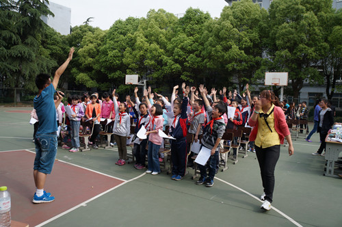 活动邀请了南长区清和小学五年级一班和二班的小朋友,并且邀请了太湖校区的外教老师助阵。活动现场气氛十分热烈,稚气可爱的小朋友们在外教老师和英语协会人员的带领下,个个饱含激情地大声朗读着英语单词,并且积极踊跃地回答外教老师的问题,得到一些激励的小礼品,孩子们的阵阵欢呼声和朗读声深深感染着在场的每位观众。