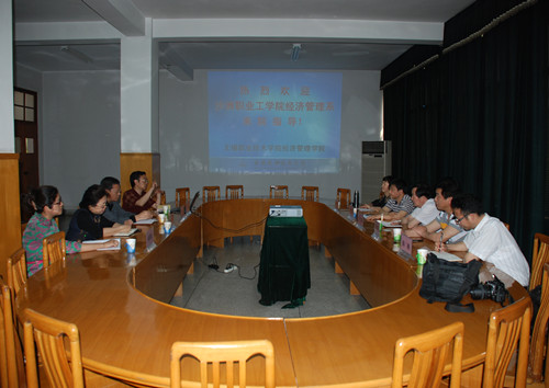 经济管理学院院长崔平教授向客人介绍了学校的基本概况和经济管理学院专业建设、师资队伍建设、科研、人才培养等方面的基本情况。双方就办学模式、专业(群)建设、教学资源库建设、实训室建设与管理等问题进行了深入探讨和交流。最后,客人们参观了经管学院实训室。