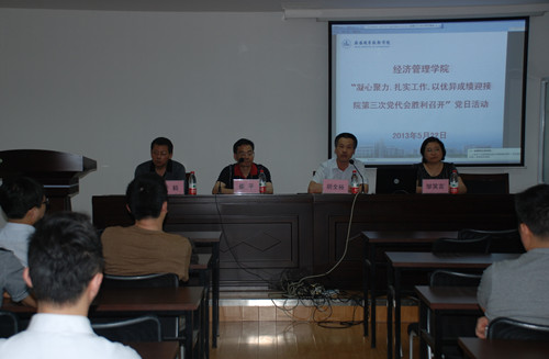 会上,经管学院党总支书记胡全裕代表经管学院总支作了题为“凝心聚力,扎实工作,以优异成绩向党代会献礼”的主题发言。胡书记的发言分为两个部分,第一部分,回顾了过去5年在上一届党委班子领导下学院取得的辉煌成绩,介绍了本届党代会召开前期各项筹备工作的进行情况,展望了学院“十二五”厚积薄发的发展规划。发言的第二部分,胡书记简单从师资队伍、专业建设、学生管理、校区运行等几个方面总结了经管学院5年来的发展成绩,重点指出经管学院在学院跨越式发展的新的历史时期所面临的机遇和挑战。活动中,党员教师们热烈的讨论了经管学院对高职本科专业培养的积极探索以及多校区运行模式下各方面工作的创新与改革等诸多热点问题,大家畅所欲言,各抒己见,碰撞出了很多思想火花。现场气氛热烈,高潮迭起。