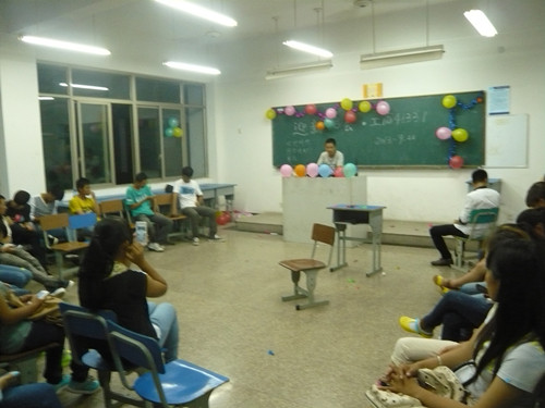 本次联欢活动由各部门部长在不同的班级主持。虽然大家认识的时间并不长,但还是准备出了精彩的节目。各部长深情献唱,各班级同学热情回应,之后同学们展示了他们的多才多艺。其间,还穿插着一些小游戏,有智力问答、一人比划一人猜、踩气球等。同学们在欢乐的气氛中度过了两个多小时。
