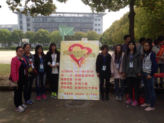 4月8日,一个阳光灿烂、暖意洋洋的中午,经管学院与控制学院红十字会联合组织的“衣加衣”送温暖活动开始举行,两组成员分别于学校梅园路口和菊园路口设置募捐点。