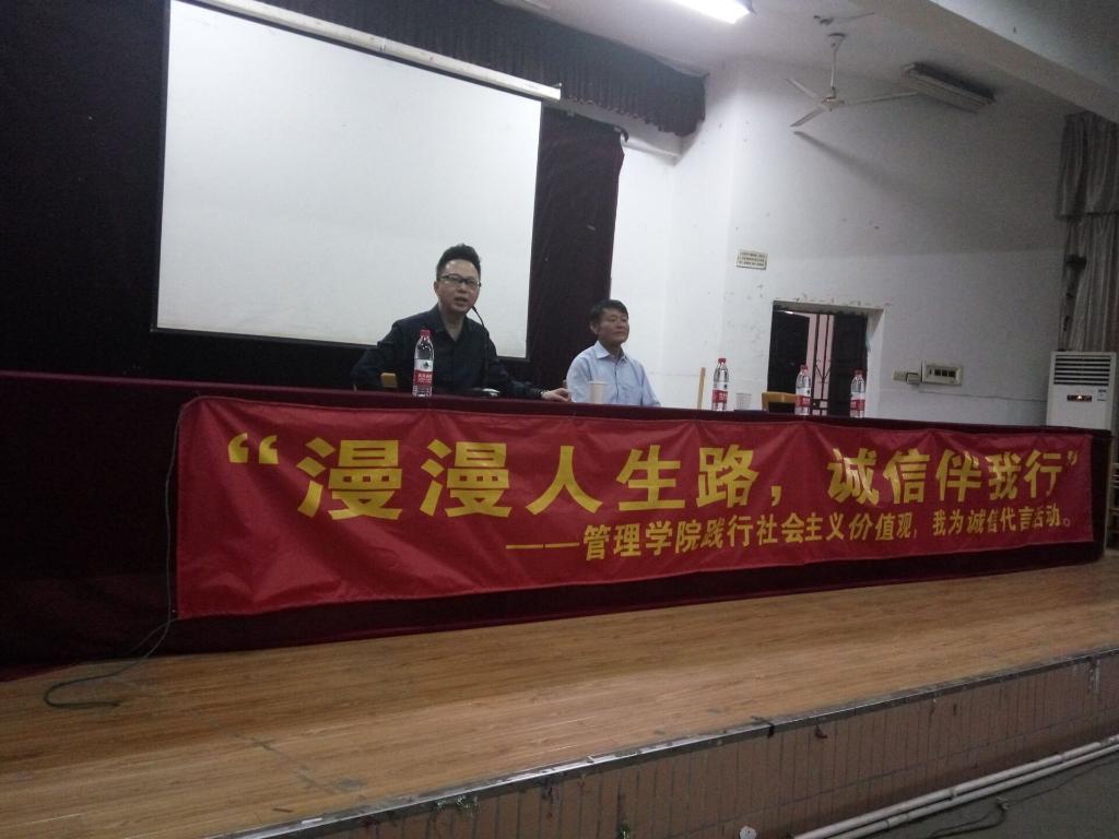 诚信是中华民族的传统美德,是社会主义核心价值观的重要内容,更是大学生立身为人、成长成才的必备品质。管理学院通过精心策划,周密部署,形成了有广度、有深度、有影响力的宣传声势,构建了我院以诚信为荣的校园文化氛围。