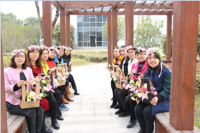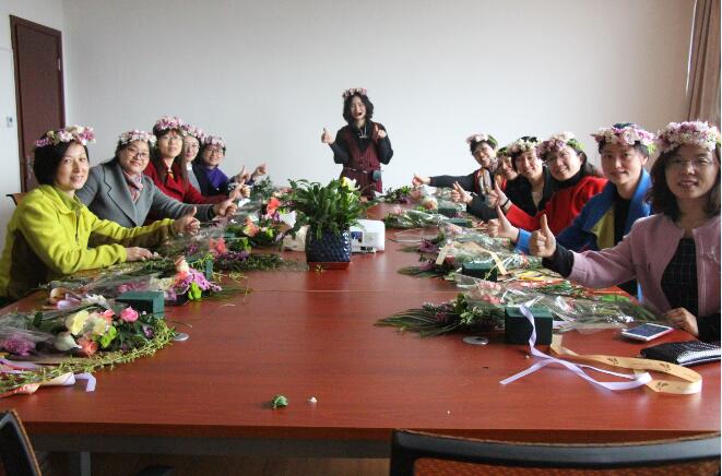 3月17日下午管理学院全体女教工在分工会主席邹笑言老师的组织下,开展了庆“三八”系列活动之“花之语”艺术插花主题活动。