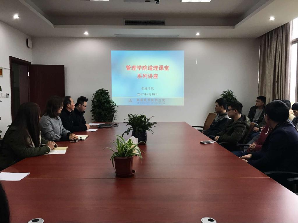4月10日,管理学院“讲道理、明事理、同进步”主题教育年系列活动之“道德课堂”第一讲在教1-415开始讲了。