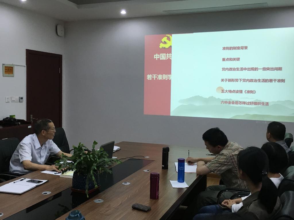 此次专题党课的主题是“学准则,强党性”。谈书记在课上详细介绍了《新准则》的制定背景、重点和关键,指出了目前党内政治生活中存在的一些突出问题,深入解读了关于新形势下党内政治生活的若干准则,总结提炼了《新准则》的五大特点,并强调了六中全会后基层党组织应该如何过好组织生活。整堂党课内容丰富,观点鲜明,案例翔实,论证精辟,使党员们接受了一次深入人心的党性洗礼,使与会的党员同志对“两学一做”学习教育的意义,在认识上有了进一步提高,对引导总支成员如何学好准则、过好组织生活以及如何做合格党员有重要的启示作用。。